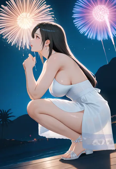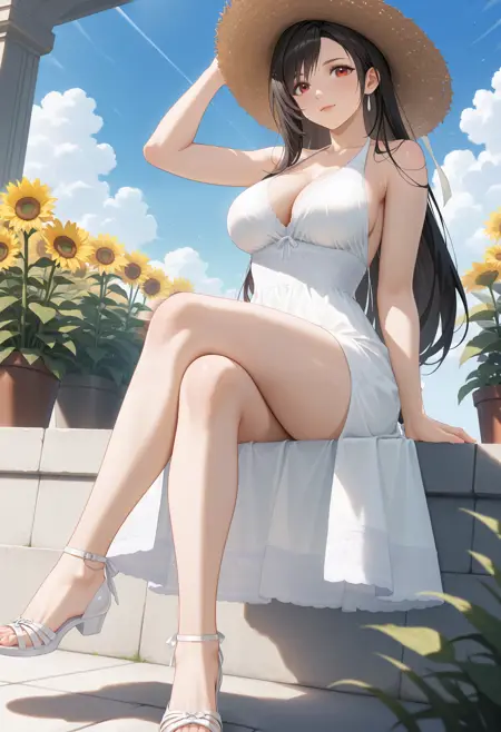 基本プロンプト:"PureWhiteSlitDress_doaxvv,sundress,white dress,side slit"