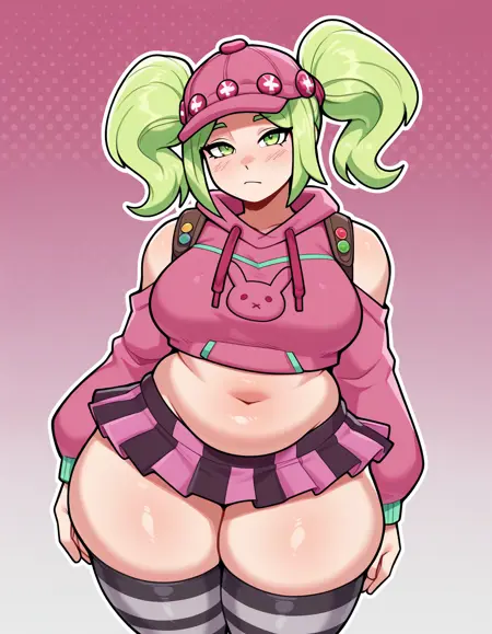 This model generates women with wide hips and curvy bodies. It's fundamentally different from my other BBW model since it was trained under an entirely different dataset, containing zero 3D and real-life images. Usually it can perform well on its own, but it'll mostly generate thick voluptuous women. If you want them fatter, you'll have to guide the model a little more (usually an issue with the base checkpoint and not the training).