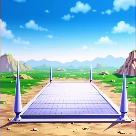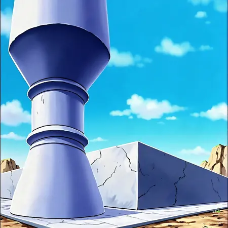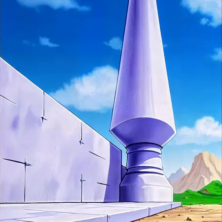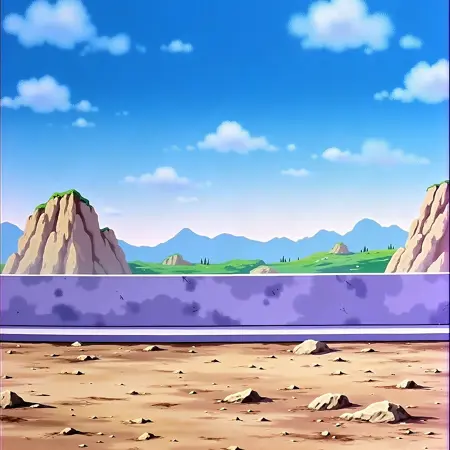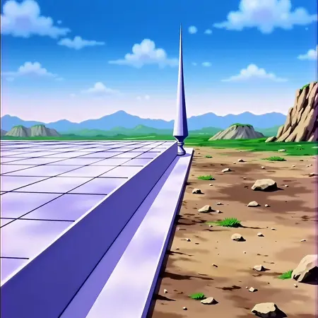 此 LoRA 基于 90 年代一部人气动漫最终篇章中标志性的战斗场景训练而成。竞技场采用《龙珠Z》特有的赛璐珞着色二维风格设计,为一座由浅色石砖铺成的抬升式方形平台,四周环绕着粗犷的自然景观,融合了建筑对称性与该时代动漫常见的质朴、高对比度背景艺术风格。