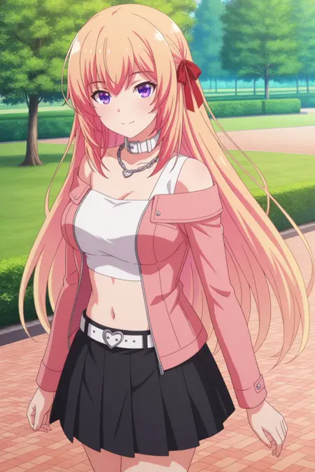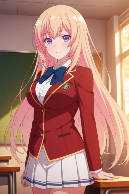 aahonami, 보라색 눈, 금발, honamiblazer, 교복, 파란색 리본넥타이, 흰색 셔츠, 빨간색 재킷, 흰색 치마, 주름 치마, 애니메이션 컬러링,