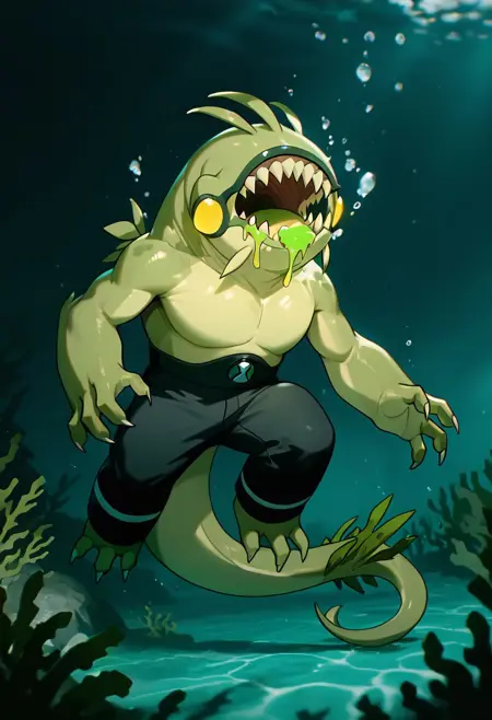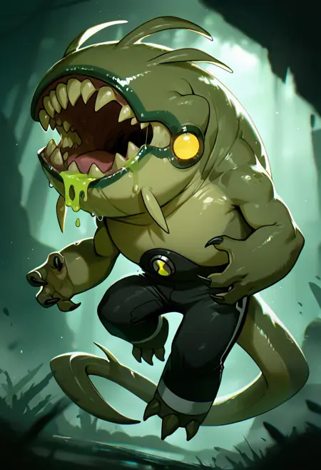 | 학습된 단어 | spittr, open mouth, solo, sharp teeth, full body, tail, pokemon (creature), green skin, monster, claws, black pants, yellow eyes, no humans, drooling, green drool복사됨! chaquetrix, spittr, open mouth, solo, sharp teeth, full body, tail, monster girl, 1girl, green skin, monster, claws, black pants, yellow eyes, no humans, ,(( small head, busty,)),복사됨! |