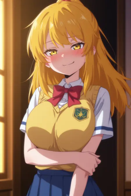 —— 她是个开朗又爱调情的女孩,拥有一头长长的橙金色长发和金色的眼睛,总是穿着标志性的无袖背心和短裤,举手投足间散发着随性的魅力,表情俏皮,充满戏谑的活力。她自信外向的性格和灿烂的笑容让人一见倾心。