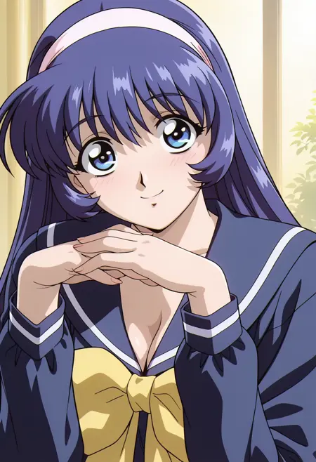 misumaru_yurika, yurika_uniform1, blue hair, long hair, sidelocks, blue eyes, breasts,