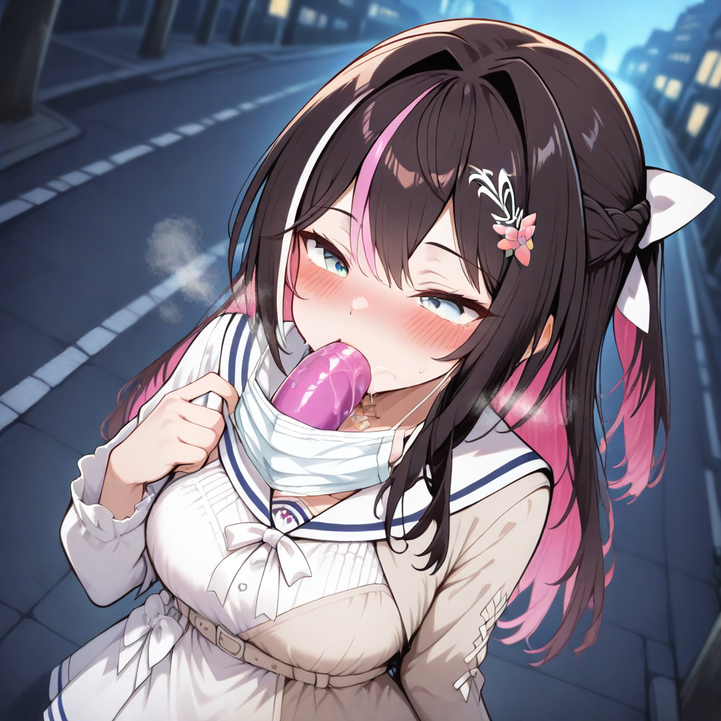 (마스터피스) (Iramask 스타일)(솔로) (Iramask:1.4)(마스크 내부의 진동자 Iramask_base) (검은색 얼굴 Iramask 착용, 외과용 Iramask:1.3) ((반눈 붉은 기:1.2) (Iramask는 삽입된 irrumatio 마스크임)