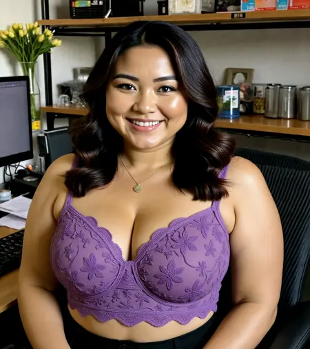 サンプル:「服だけを交換:contourluxe2025のラベンダー色フルカバー型ワイヤー付きブラを着用。最大限のビッグバストサポートを実現するよう設計され、強化された3ピース型成カップに厚手のスパンデックスレースが重ねられ、超強力な厚手のエルスタンスサイドパネルとパワーメッシュのウィング、構造的なボニング、広めのサポートストラップ、そして安全なセンターのリボンが特徴。体にぴったりとフィットするよう非常にきつく仕上げられています」