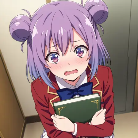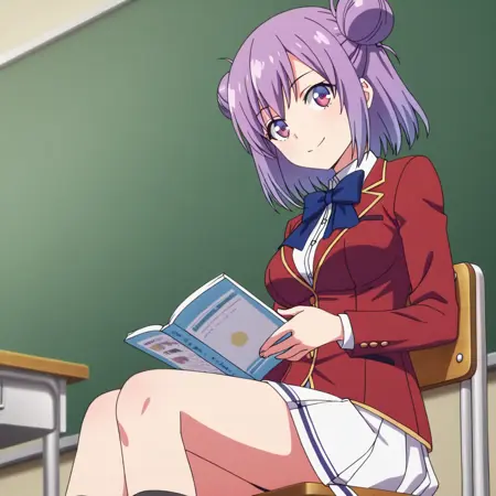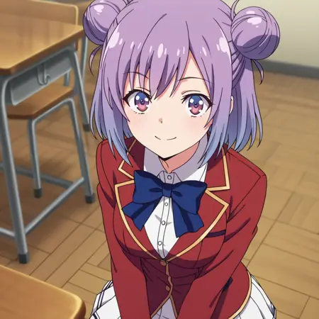 Tachibana akane (Youkoso Jitsuryoku Shijou Shugi no Kyoushitsu e),purple hair,double hairbun,purple eyes,medium breast