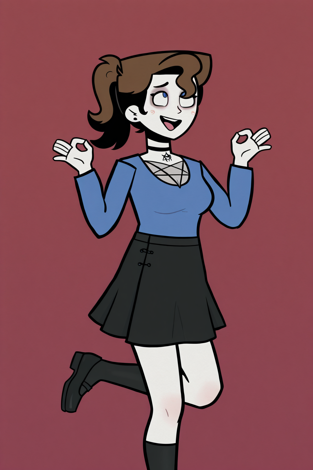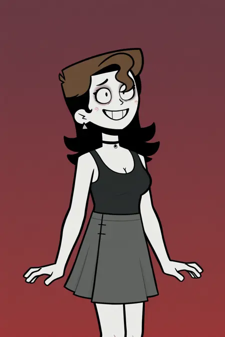 Stephanyは通常、「スパイダー」型のチョーカーを着けているように描かれており、この点の再現性が若干失われています。時々、意図せずチョーカーが生成されることがあるため、不要な場合はネガティブプロンプトに
