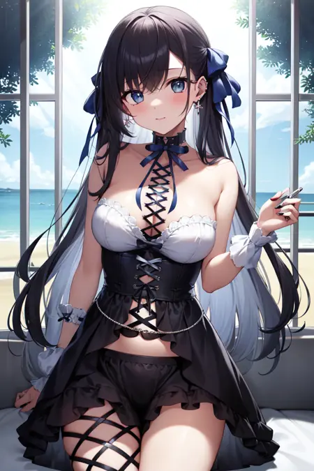 建议将“corset”(束腰)加入负面提示,以避免偶尔生成束腰。