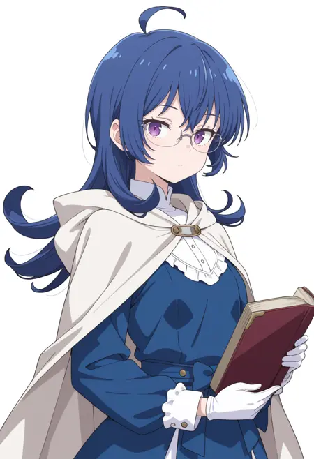 saria_de_saloum_nekoforge,1girl,purple eyes,blue hair,long hair,ahoge,closed mouth,expressionless,glasses,semi-rimless eyewear,