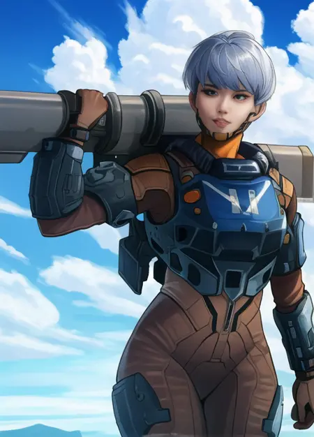 Apex 英雄中的女武神(Valkyrie)的 LoRA 模型。我发现这个模型实际上能生成女武神的服饰风格。虽然面部偶尔会有点变形,但整体还是很像她的。