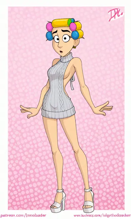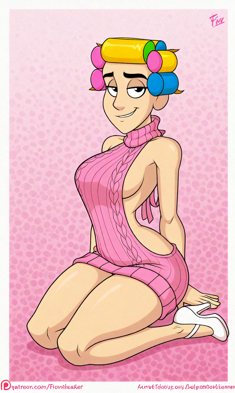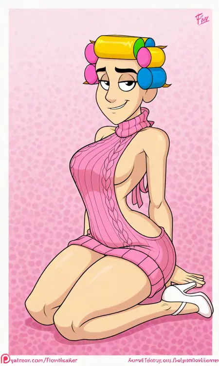 标签:D_florinda,黑眼睛,粉红色裙子,黄色围裙,卷发器,白色高跟鞋