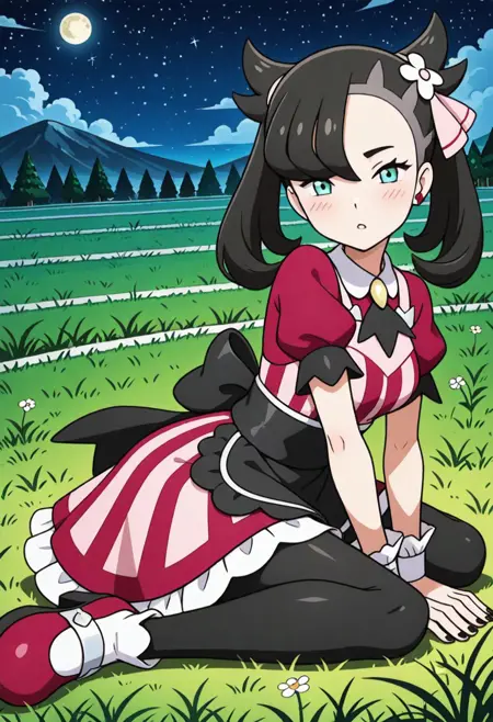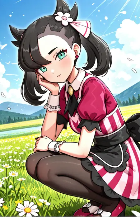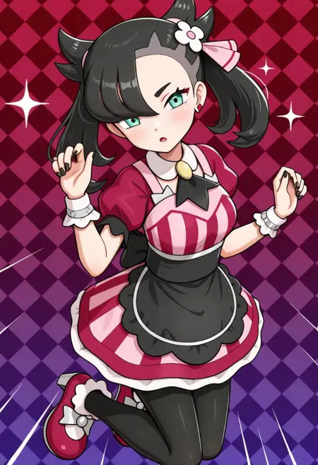 palmarnie, marnie \(pokemon\), 녹색 눈, 검은 머리, 비대칭 앞머리, 중간 길이 머리, 트윈테일, 한쪽 귀고리, 검은 손톱