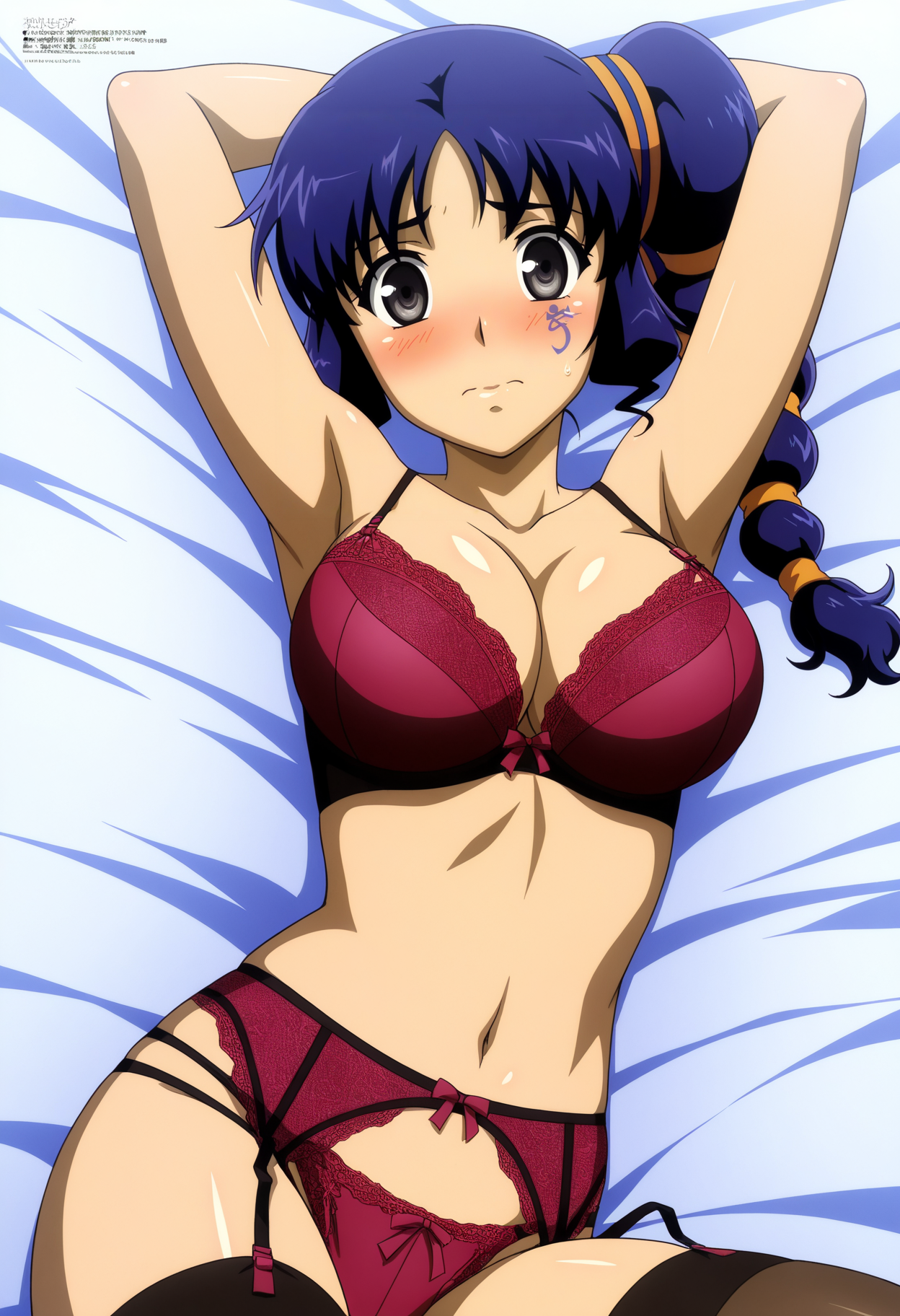 Basic prompts : 1girl, rana, grey eyes, blue hair, long hair, braid, side ponytail