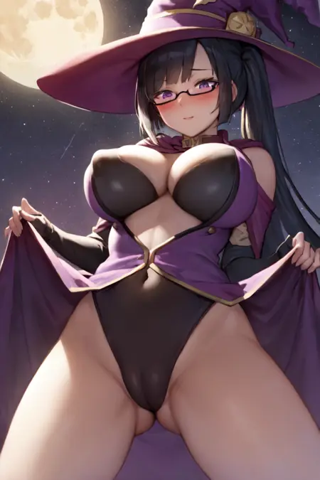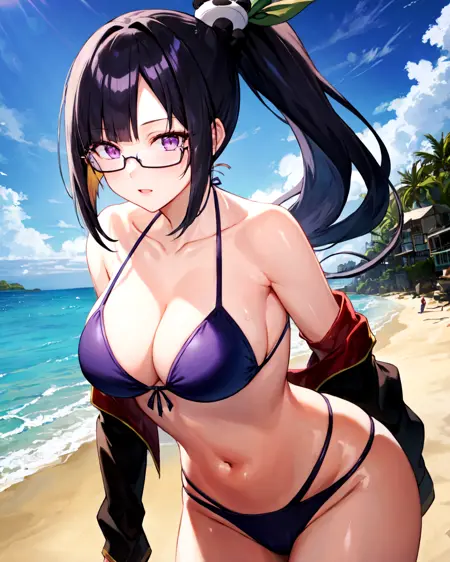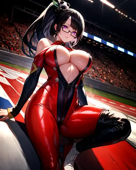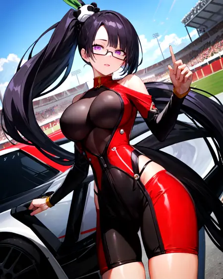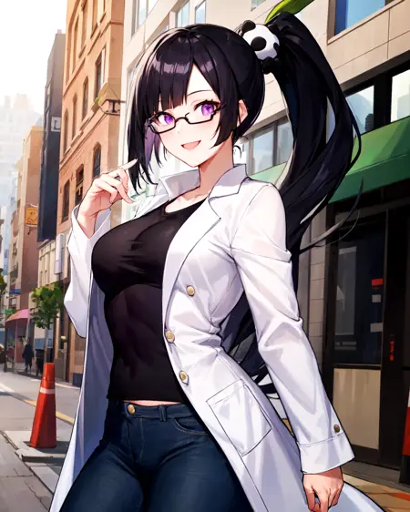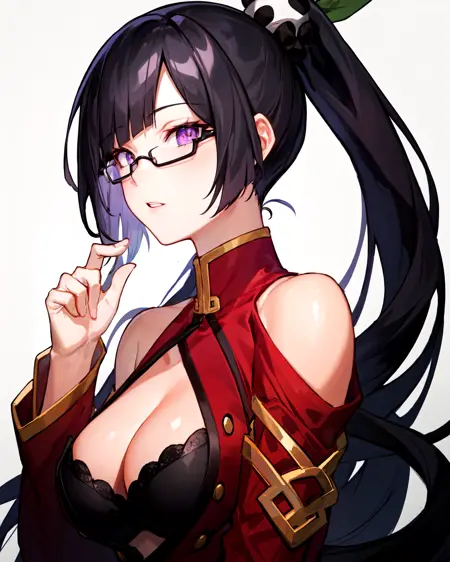 Litchi Faye Ling, 자홍색 눈, 안경, 단추 헤어스타일, 검은 머리, 머리 장식 으로 트리거되며, 안경 없이 또는 다른 헤어스타일로도 사용 가능합니다.