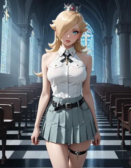 This one is kinda sloppy, but works in general. Has crosses baked in but be careful when using the cross tag (known thing in SD) it'll just blast crosses up your ass. Shirt can be untucked but based on character will ignore you.