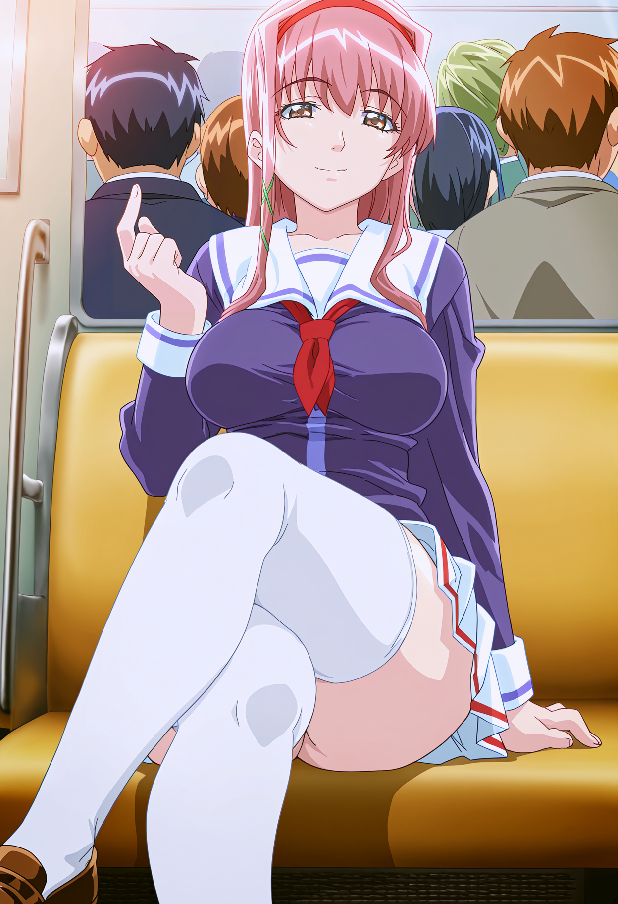 해적 칼라, 학교 유니폼, 긴 소매, 흰색 주름 치마, 흰색 허벅지 양말