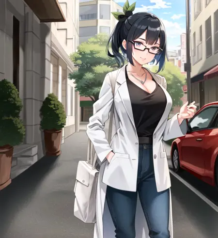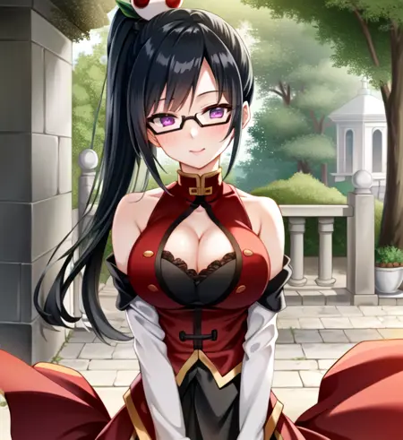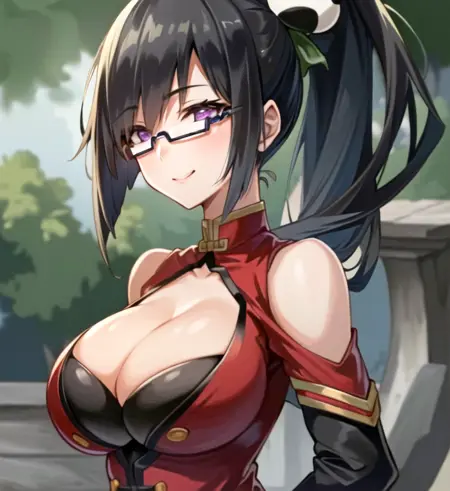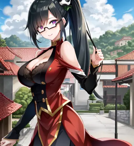 Litchi Faye Ling, 자홍색 눈, 안경, 단추 헤어스타일, 검은 머리, 머리 장식 으로 트리거되며, 안경 없이 또는 다른 헤어스타일로도 사용 가능합니다.