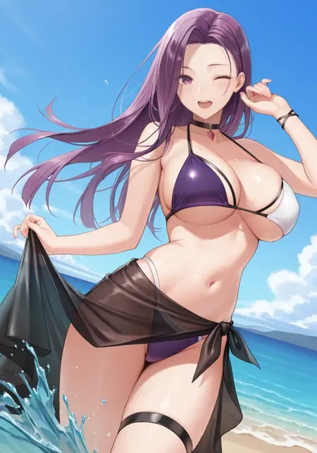 ビキニ:SonyaBKN、紫目、多色ビキニ、チョーカー、サロング、太ももストラップ、サンダル