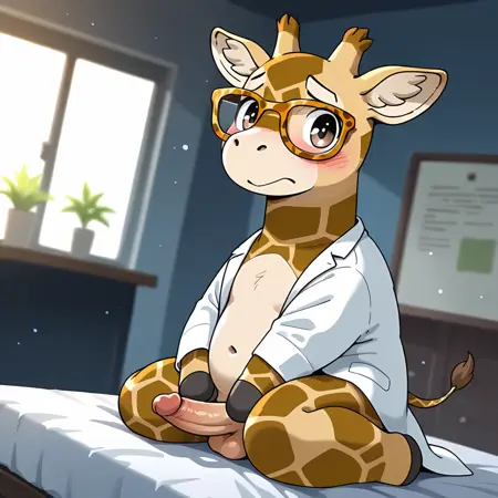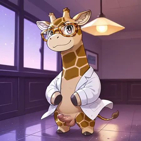 tsalgir, giraffe_boy, (no_humans), chibi, (no_neck), tortoiseshell-framed_eyewear, 1boy, solo,