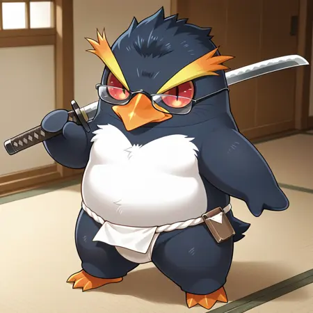 tsalpeng, penguin_boy, 1boy, (chibi), plump, black_under-rim_eyewear, (((solo))),