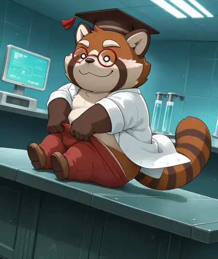 tsalrpan, red_panda_boy, 1boy, (chibi:0.5), plump, red_round_eyewear, o_o, ((solo++)),