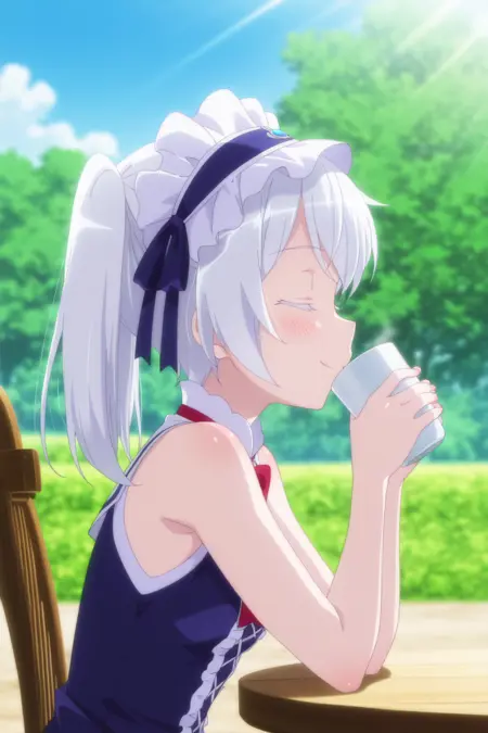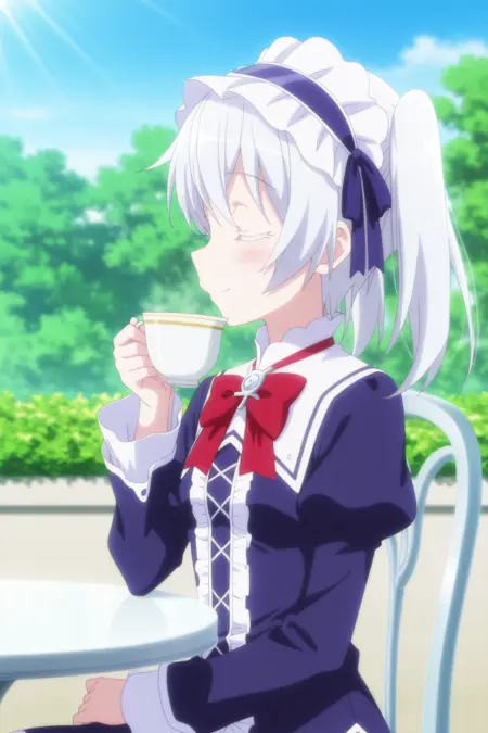 — 그녀는 차분한 성격의 정제되고 우아한 소녀로, 은색 머리를 테인테일로 묶고 빨간 리본이 장식된 고전적인 고딕 메이드 복장을 입고 있다. 젊은 외모에도 불구하고, 차분한 분위기와 차를 마시거나 우산을 들고 다니는 우아한 습관은 그녀의 고귀하고 성숙한 성격을 반영한다. 침착하지만, 그녀의 매력은 조용한 강함과 충성심에 있다.