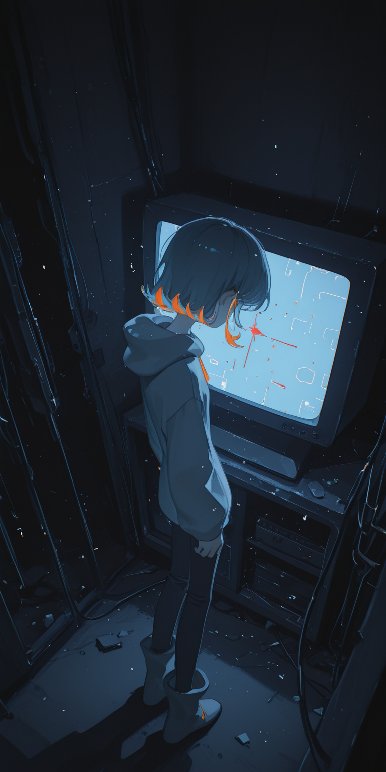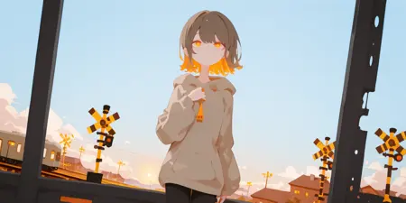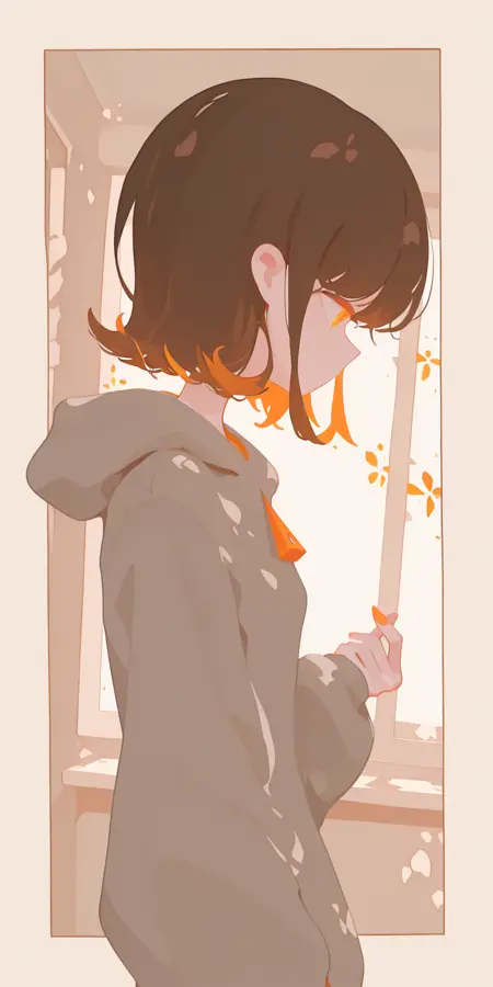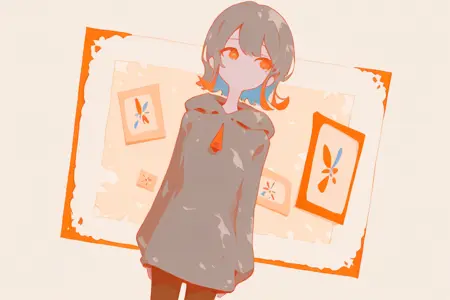 1girl, 단발, 다색 머리, 이톤 머리, 회색 머리, 주황색 머리, 앞머리