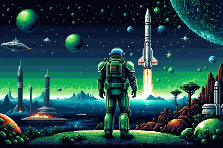 가중치 1.0을 사용하면 수년 전 픽셀 에디터로 제작한 캐릭터를 얻을 수 있습니다. 가중치를 1.0보다 낮게 설정하면 다양한 시도를 통해 픽셀 그래픽을 생성할 수 있습니다.