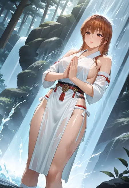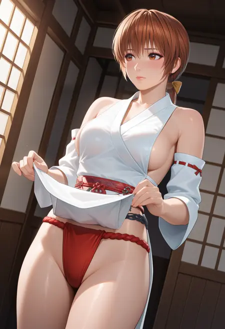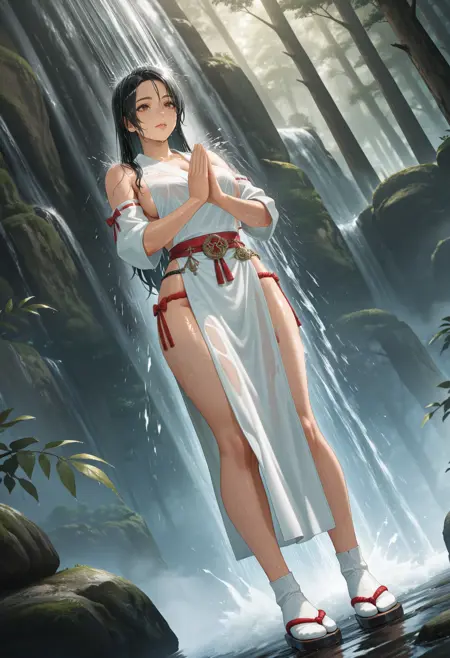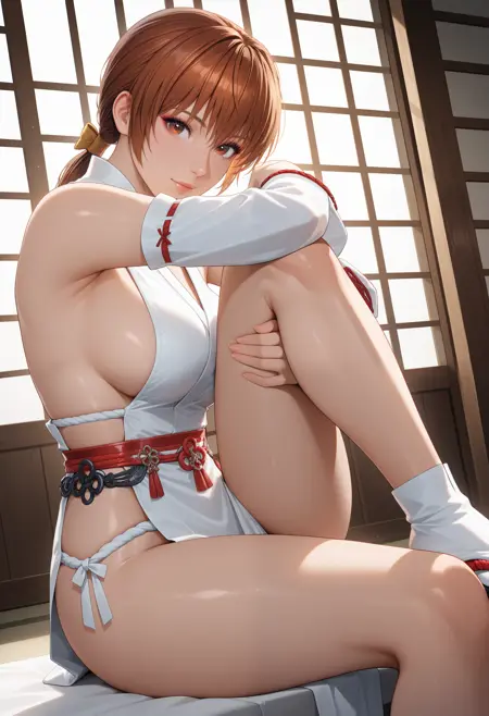 基本プロンプト: "ShiroHozuki_doaxvv,japanese clothes,white dress,detached sleeves,white sleeves,sideless outfit,pelvic curtain,bow,sash,fundoshi,tabi,white socks"