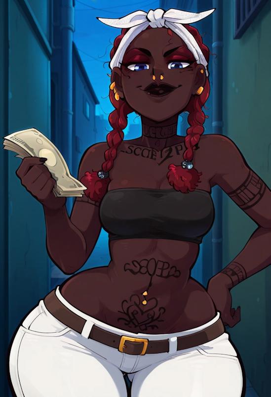 darkthug, 검은 피부를 가진 여성, 갈색 피부, 파란 눈, 빨간 머리, 두 개의 땋은 머리