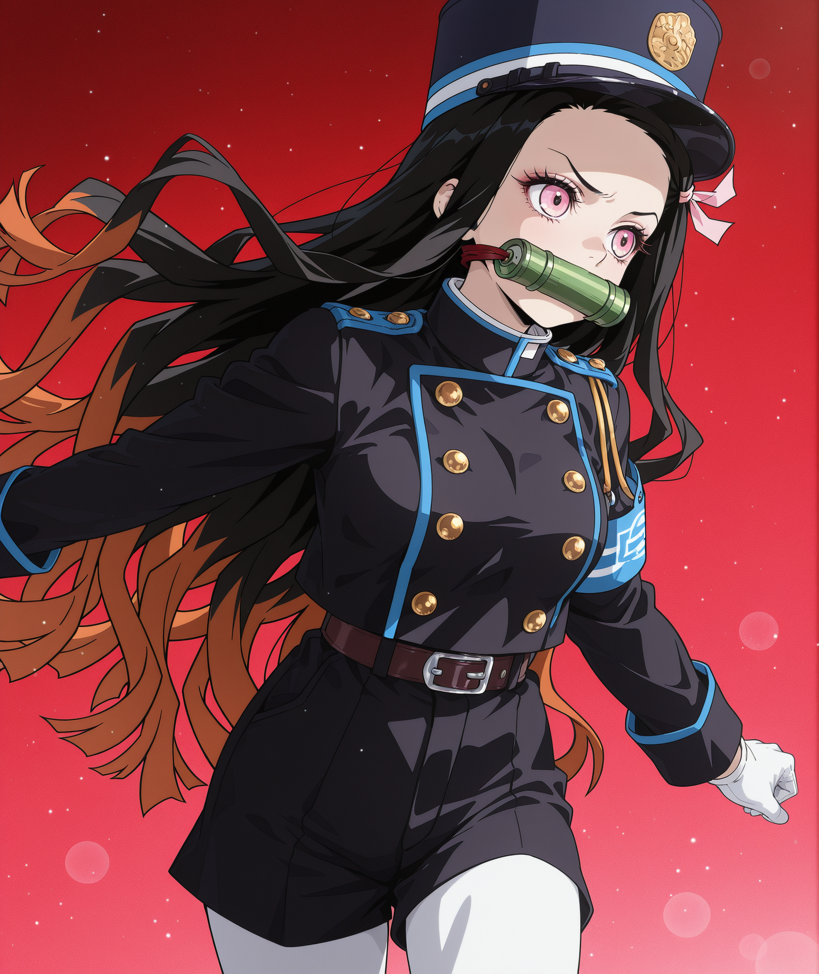 긴 소매, 장갑, 재킷, 흰색 장갑, 더블버튼, 검은 재킷, 유니폼, 단추, 팔찌,