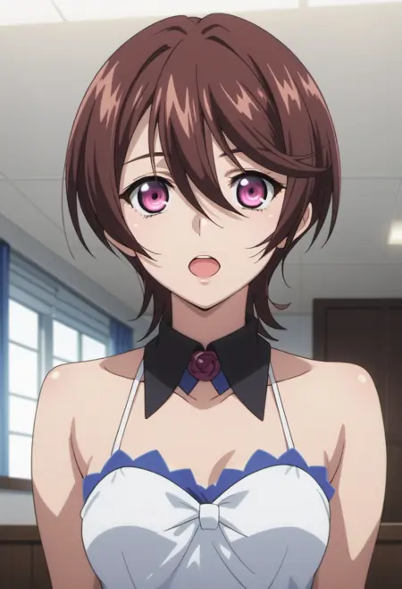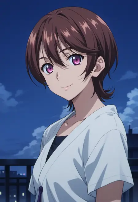 트리거 단어: tokoyogi yuuma, 갈색 머리카락, 보라색 눈, 단발