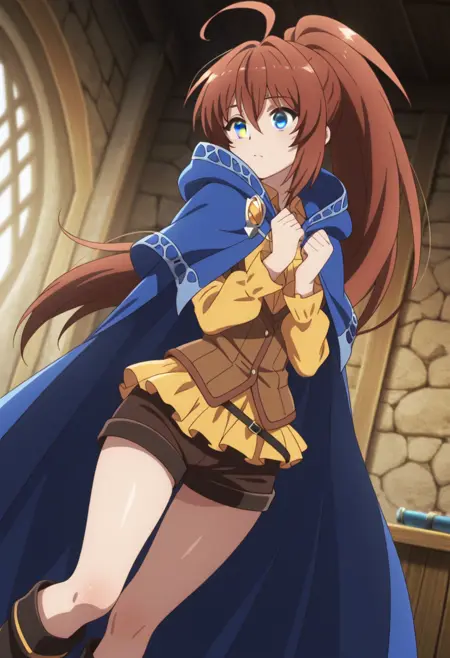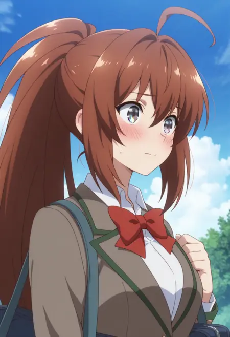 트리거 단어: 아즈마 린 (이세계 부정 마법사), 긴 머리, 갈색 머리, 꼬리머리, 회색 눈