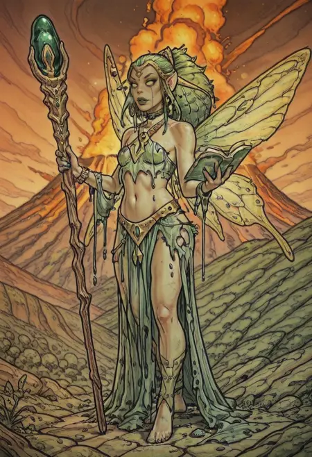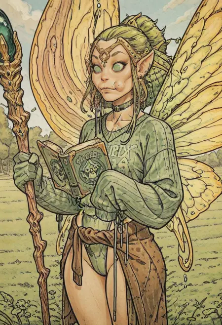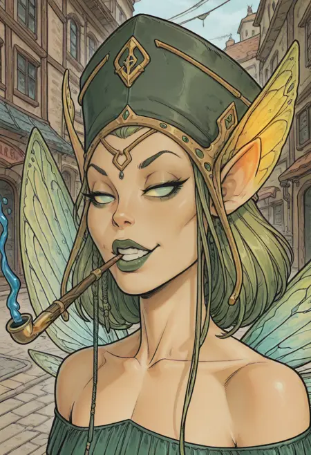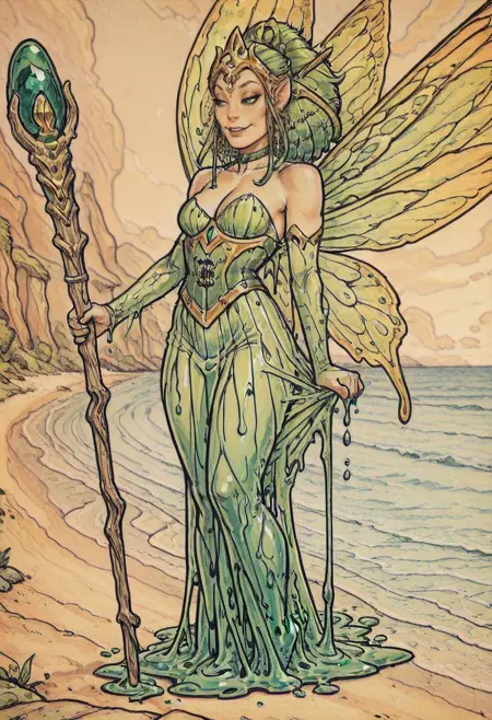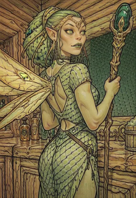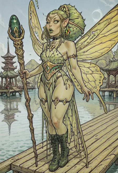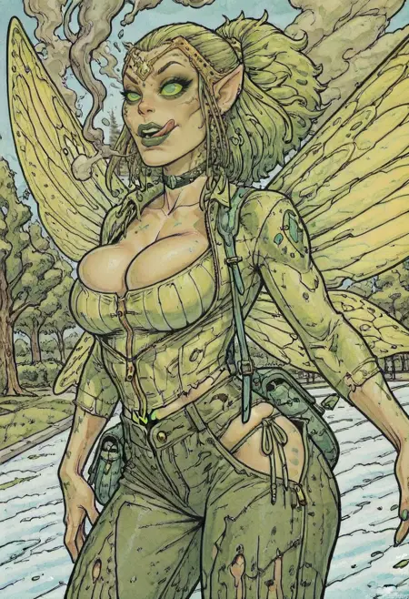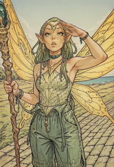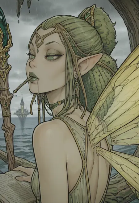 pqmtg, 绿色头发, 精灵翅膀, 绿色嘴唇眼睛可选: