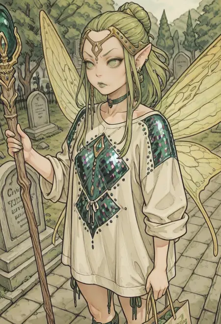 请添加肤色(例如苍白皮肤),因为该LoRA倾向于让她拥有绿色皮肤。