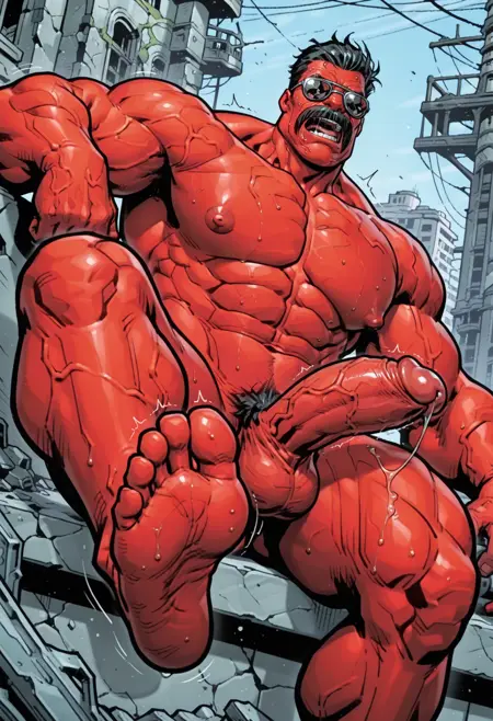 Robert Maverick, red skin, Sunglasses, muscular man, short hair, veins, mustache, black hair, huge muscles,