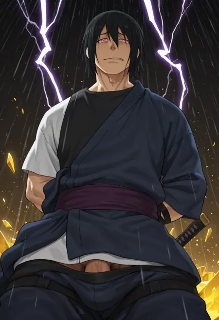 BenimaruFF, BenimaruFF_black_hair, BenimaruFF_marked_red_eyes, BenimaruFF_black_kimono, BenimaruFF_grey_pants