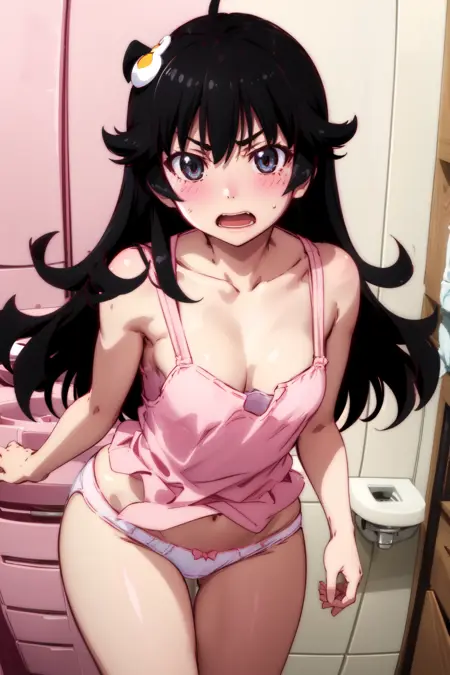 araragikaren, long hair, ahoge, egg hair ornament, pink tank top, white panties, underwear,