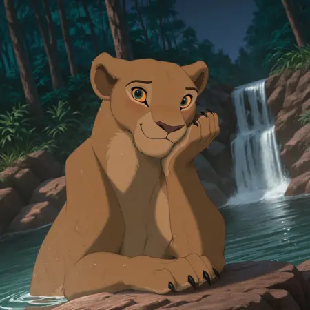 Nala is one of the main characters from Disney's The Lion King. There are some Illustrious models for her already, but I wanted to make my own. I don't know if those models have fanart trained in them, so I wanted to make a Nala model using movie footage only. This has been trained with about 55 images trained with 4k screencaps with no fanart trained. This model wasn't trained with images of her when she was a cub either. I have not trained this with The Lion King 2 screencaps and only Lion King 1 was used. She also has 2 eye color types since the lighting in some scenes change her eye color to blue instead of green. Make sure to put "pointy eyelashes, eyelashes" in the negative prompts since the AI likes to give her those black pointy parts around her eye sockets on her upper eyes too. Her philtrum goes through her nose too sometimes, but I don't think it's a dealbreaker.