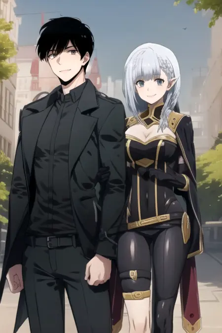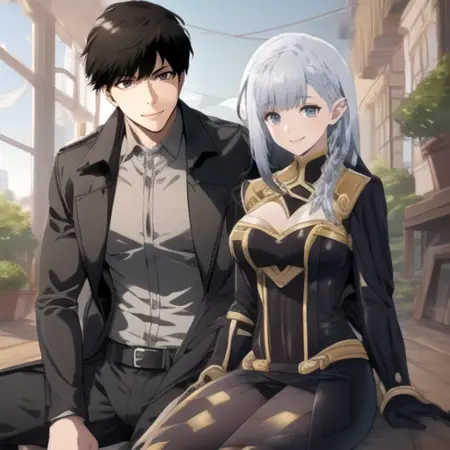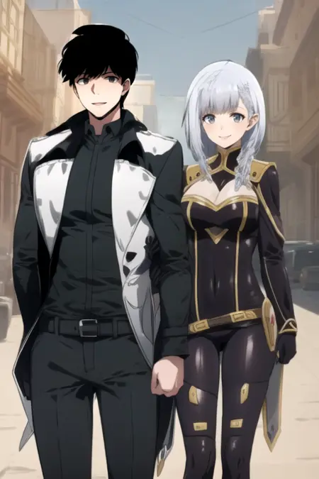 DokjaBeta, a man and a woman, hetero, standing, smile, cowboy shot