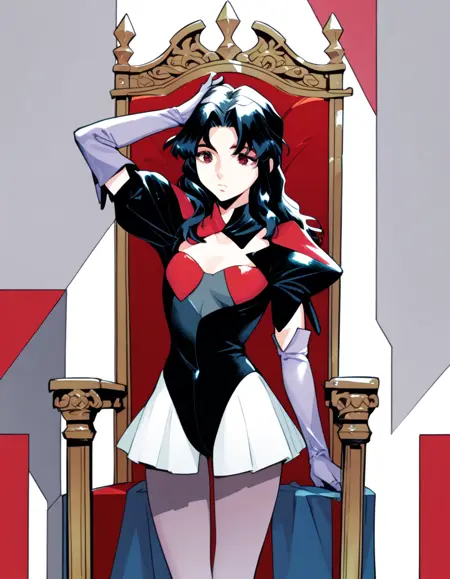 outfit: pauldrons, leotard, skirt, elbow gloves, pantyhose