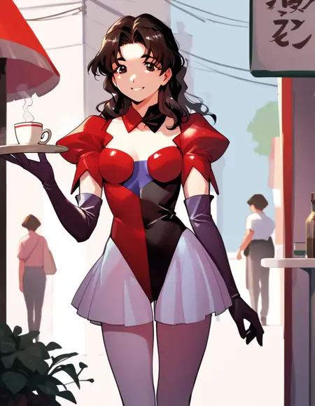 Pony version trained with Pony Diffusion V6 XL and images generated with Anime Confetti Comrade Mix