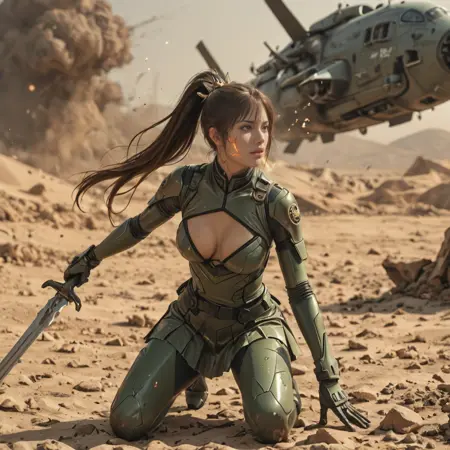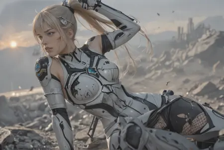 sbeve, eve, 黑色长马尾,白绿色纳米服,裸露肩膀,发饰,