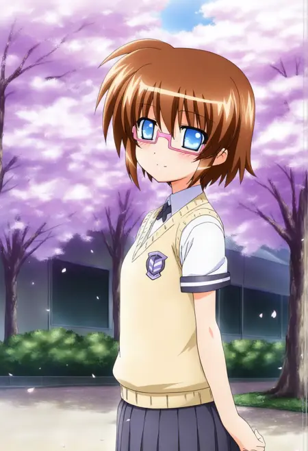 Clothing: school uniform, sweater vest, short sleeves, pleated skirt,