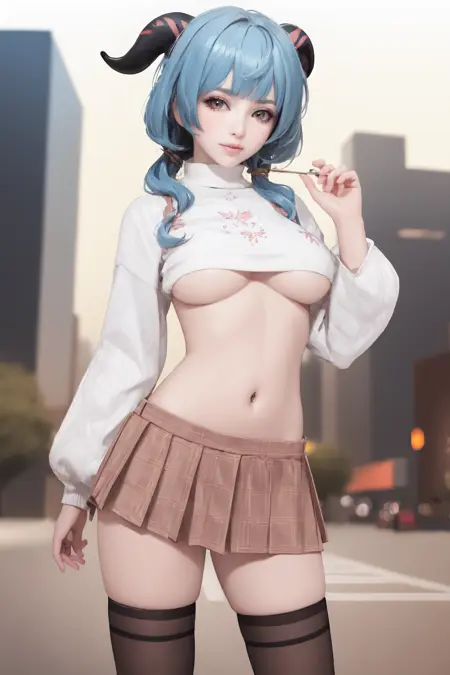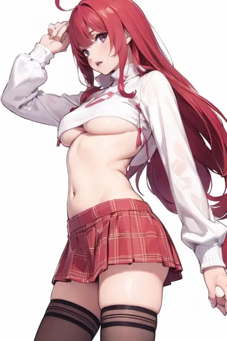 트리거 단어(Trigger word): 1girl,solo,thighhighs,breasts,underboob,skirt,navel,plaid skirt,plaid,black thighhighs,sweater,midriff,miniskirt,long sleeves,