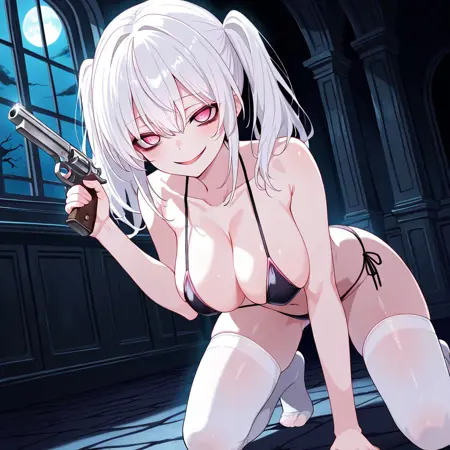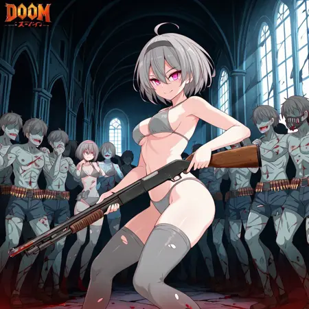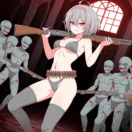 服装:过膝袜,灰色比基尼,发带,霰弹枪,腿部弹药带