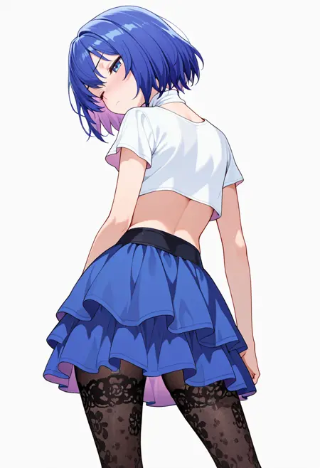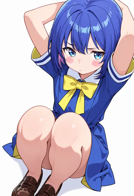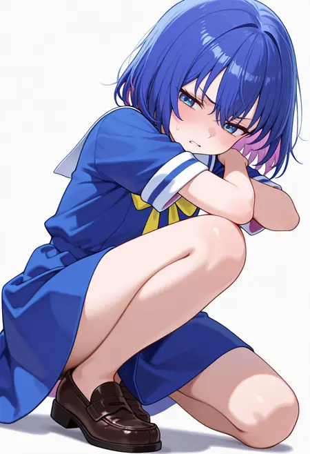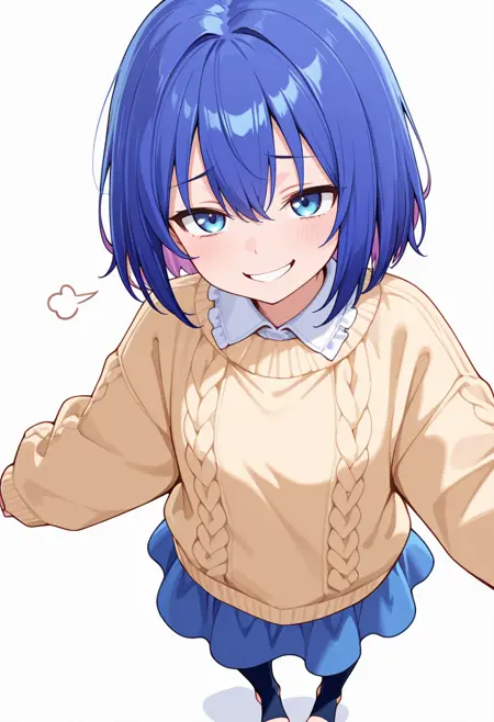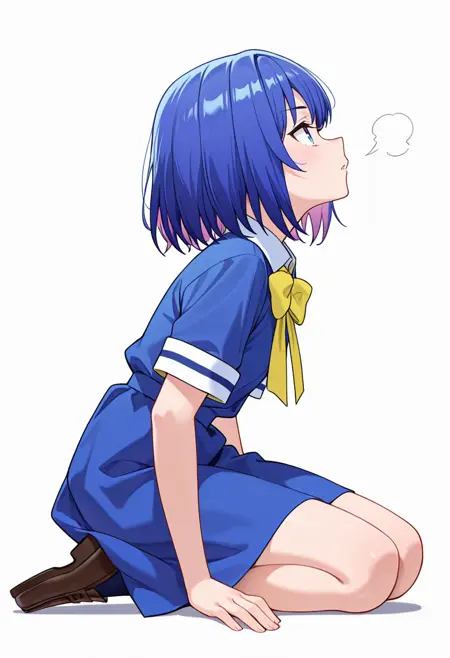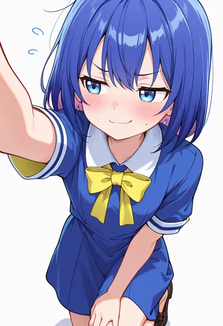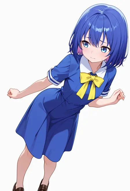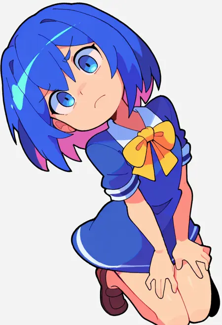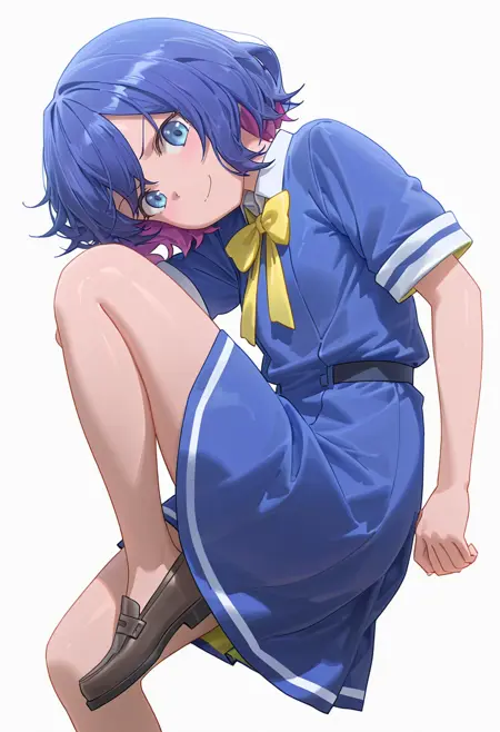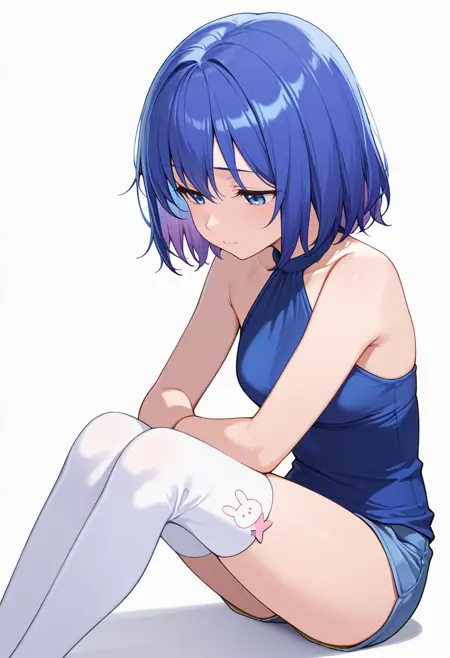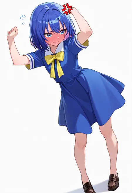 anemone_cnr, 1girl, blue hair, short hair, bangs, blue eyes,
