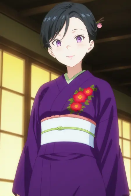 — 그녀는 고결한 매력과 함께 클래스를 선사합니다. 우아하고 정제된 태도로, 음식에 대한 반응으로 언제나 마음을 녹여냅니다. 요리를 세심하게 맛보는가 하면, 과장된 기쁨에 휩싸이기까지, 그녀는 언제나 스타일리시합니다. 그녀의 키모노는 ‘우아한 부인’을 상징하지만, 음식에 대한 열정적인 반응은 순수한 애니메이션의 진주입니다. 매력, 우아함, 그리고 적절한 드라마틱한 분위기를 포착하기 위한 완벽한 모델입니다!