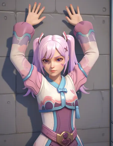 dvamythic, hairstyle3, twintails, pink hair, purple eyes
