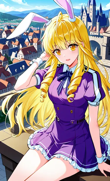| 训练词汇 | Nannan, 1 girl, solo, yellow eyes, long hair, blonde hair, curly sidelocks, thick sidelocks, traight bangs, parted bangs, ahoge, hair between eyes, rabbit ears, animal ears,已复制! Nannan_outfit01, purple uniform, short sleeves, white trim, white collar, white shoulder accents, fitted dress, puff sleeves, pleated skirt, frilled skirt, short skirt, white and blue school uniform, chest bow, purple bow, ribbon tie,已复制! Nannan_outfit02, white dress, black trim, long sleeves, flared sleeves, cleavage cutout, tight waist, high collar, short skirt, flared skirt, pleated skirt, white thigh-highs, white boots, black waist belt, shoulder accents, black armbands,已复制! |